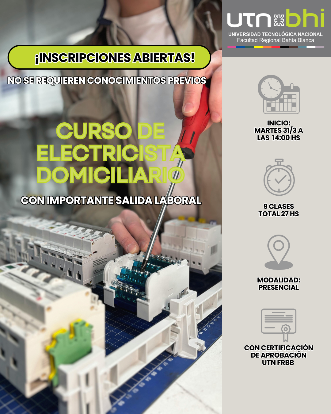 Hoy más que nunca se necesita mano de obra calificada para mantener y reparar instalaciones eléctricas. Con este curso vas a adquirir las habilidades técnicas y prácticas necesarias para desempeñarte con seguridad, eficiencia y profesionalismo en un rubro con alta demanda.