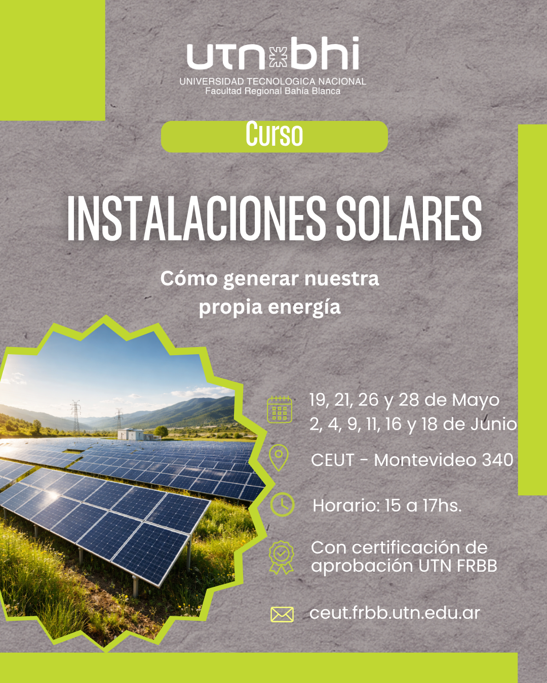 INSCRIPCIONES EN EL SIGUIENTE ENLACE: https://ceut.frbb.utn.edu.ar/altaweb/pages/inscripciones.php