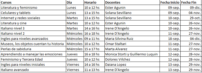 Cursos dirigidos solo para adultos mayores.